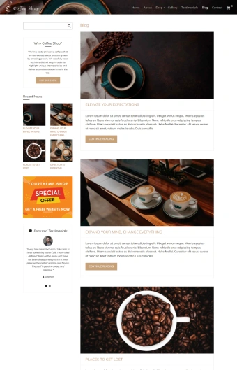 CoffeeShop Pro WordPress Template Home Page
