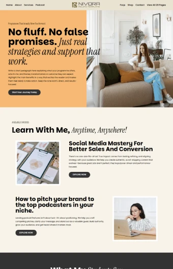 We’ve seen too many people waste months fighting with clunky templates, overpaying developers, or giving up on their online dreams. That’s why we built this Kajabi starter templates so that anyone can launch in hours—not weeks.