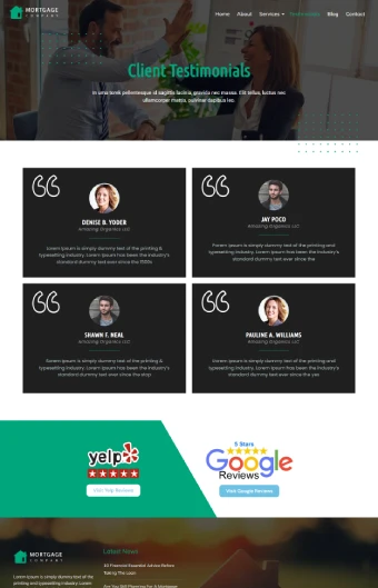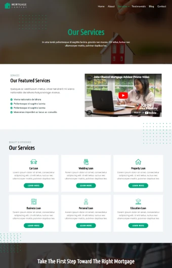 Fast-loading, fully responsive, ready, this theme makes it simple to showcase mortgage products, highlight client testimonials With drag-and-drop editing, you can launch a professional site in minutes—no coding required.