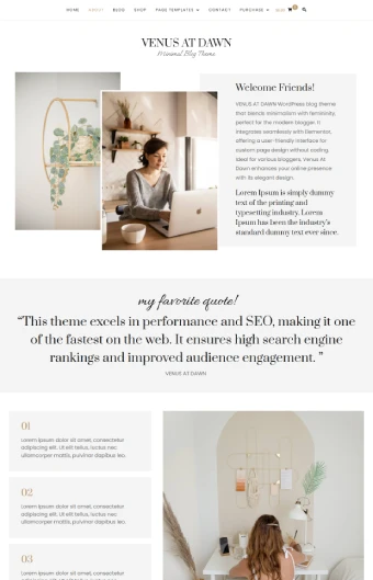 With one-click setup, advanced design options, and SEO-friendly performance, Venus makes it simple to launch a store, grow a blog, or run both together. It’s fully responsive and optimized for speed, ensuring your site looks and works perfectly on every device.